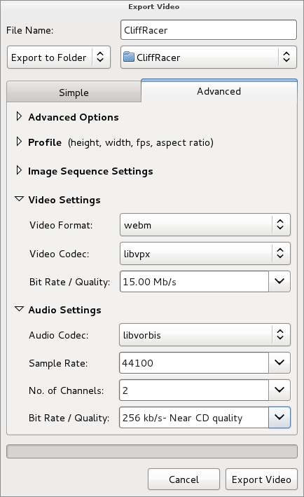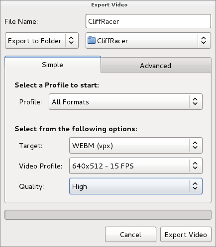 However, one thing I noticed was that I initially found it difficult to reach an acceptable file size vs compression for webm under OpenShot. The first way I found to resolve this was to output to a high quality version. See pictures one and two (for reference it works out around 1GB for 10 minutes at 1280x1024). I then used ffmpeg to reduce the filesize while still keeping the quality reasonable. Here's the command line I used: